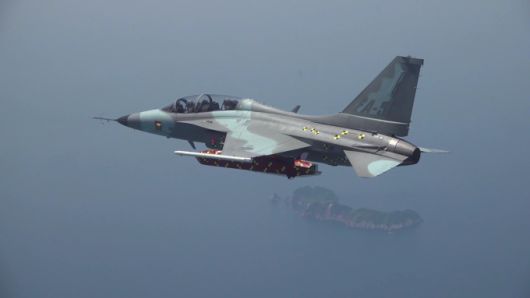 군(軍) 당국이 한국형 장거리 공대지 유도탄 '천룡' 안전분리 비행시험에 성공했다. 시제용 FA-50 경공격기가 천룡 안전분리 비행시험을 하고 있다. [사진=방위사업청] |
