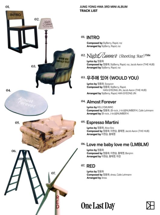 소속사 FNC엔터테인먼트는 24일 공식 SNS 채널을 통해 정용화의 미니 3집 '원 라스트 데이(One Last Day)' 트랙리스트 포스터를 공개했다.