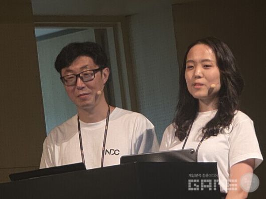 퍼스트스파크게임즈의 나태현씨와 이현희씨가 발표한 콘솔 UX 포스트모템 세션 /게임와이 촬영 |
