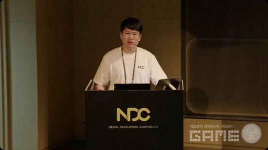AI를 사용하여 게임 내 수많은 밸런스를 빠르게, 체계적으로 활용하는 주제에 대해 강연 중인 넥슨코리아의 한재민 기획자 |