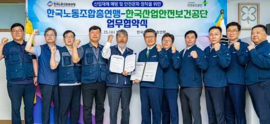 안전보건공단은 25일 오후 한국노총 본부에서 한국노동조합총연맹과 '산재예방 및 산업현장 안전문화 정착을 위한 업무협약'을 체결했다고 밝혔다.