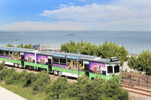 아름다운 해안 절경을 만끽할 수 있어 움직이는 전망대로 불리는 부산 여행의 인기 코스 블루라인파크 해변 열차가 '알라딘 소원 열차'로 변신한다. 해운대 미포에서 청사포, 송정역까지 이어지는 해안선을 따라 달리는 해변 열차의 내외부를 작품과 한국 초연의 알라딘, 지니, 자스민 배우들의 캐릭터 이미지로 디자인했다. 마치 아그라바 왕국을 향해 매직 카펫을 타고 나는 듯한 '소원 열차'에 몸을 실어 낭만적이고 마법 같은 여행을 즐길 수 있다. 시원한 바다를 배경으로 색다른 풍경을 선사할 '알라딘 소원 열차'는 7월 27일까지 운영되며 미포, 청사포, 송정에서 출발한다.