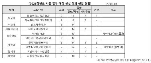 2026학년도 대입의 특징 중 하나는 첨단분야를 중심으로 신설 학과가 다수 생겼다는 것이다. 25일 진학사 입시전략연구소가 주요 대학의 2026학년도 신설 학과들을 정리했다.