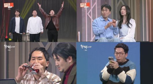 과거 인기 코너를 리메이크해 꾸준한 사랑을 받는 또 다른 코너로는 '황해 2025'가 있다. 올해 1월부터 시작한 이 코너는 2013년 방영한 '황해'를 12년 만에 리메이크한 코너다. 원작에서는 보이스 피싱, 다시 말해 전화 통화로 상황을 전개했지만, '황해 2025'의 오민우와 장현욱은 정범균을 대상으로 2025년 현실에 맞게 스마트폰 메신저를 이용한 어설픈 사기행각을 보여준다.