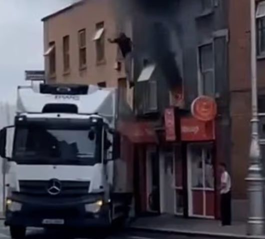 24일(현지시간) 영국 데일리메일에 따르면 지난 23일 아일랜드 더블린의 그랜비 로우에 위치한 3층 건물에서 거대한 검은 연기가 치솟는 가운데, 한 대형 트럭이 건물에 접근하는 모습이 영상에 담겼다.