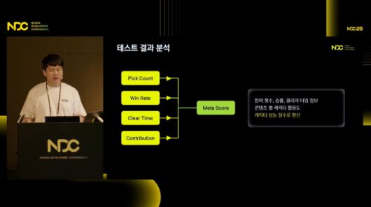 이에 한재민 기획자는 시뮬레이션 결과를 토대로 캐릭터 성능을 점수로 환산하는 방법을 채택했다. 승리 조합에 많이 포함된 캐릭터, 조합의 승률이 높은 캐릭터, 클리어 타임이 빠른 캐릭터 등 여러 경우의 수를 고려해 캐릭터별 역할을 정의하고 기여도에 따른 점수를 부여했다. 특히 이 점수는 실제 성능과 유의미한 상관 관계를 갖도록 하는 설계가 매우 중요하다.