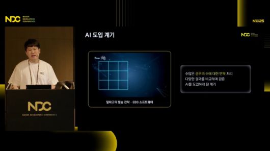 이제는 AI가 단순한 도구를 넘어 게임 디자인의 방식을 바꾸는 흐름이 나타나고 있다. 넥슨코리아 '한재민' 기획자는 이런 흐름 속에서 AI를 활용한 캐릭터 디자인이라는 주제로 세션을 시작했다. '38만년을 1주로?' 라는 제목으로 시작된 이번 세션은 주로 캐릭터 디자인과 밸런싱에 초점을 맞추고 있다.