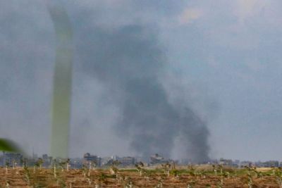 지난 1월 이스라엘 남부에서 바라본 장벽 너머 가자지구에 이스라엘군 포격으로 연기가 피어오르고 있다. 연합뉴스 |