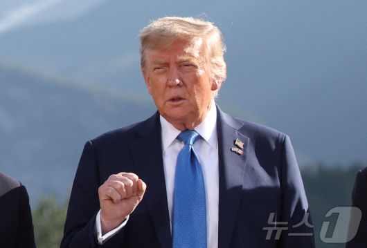 16일 캐나다 앨버타주 캐내내스키스에서 열린 G7 정상회의 중 도널드 트럼프 미국 대통령이 단체 사진 촬영에 임하며 자세를 취하고 있다. 2025.6.16 ⓒ 로이터=뉴스1 ⓒ News1 강민경 기자 |