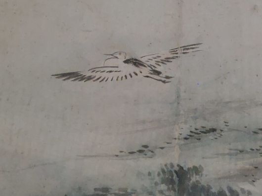 19세기 초 단원 김홍도의 말년 화첩인 ‘산수일품첩’ 가운데 홀로 날아가는 백로를 그린 ‘향사군탄’의 일부분. 노형석 기자 |