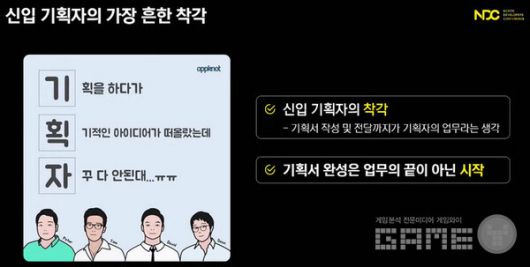 김영준 강연자는 "처음 입사했을 당시 의욕이 앞선 상태에서 멘토에게 어떤 공부를 해야 하는지등 많은 질문을 했다. 그때 돌아온 대답은 많은 게임을 플레이해라 였다. 당시에는 단순한 배려 차원의 말이라고 생각하고 엑셀이나 VBA 등의 공부를 했다. 하지만 시간이 지나면서 깨달은 것은 많은 게임 플레이가 게임 기획자에게는 큰 도움이 된다는 것이었다. 단순히 게임을 플레이하는 것에 그치지 않고 왜 라는 질문과 이 게임이 왜 인기가 있는지, 이 콘텐츠는 왜 유저에게 ㅈ좋은 평가를 받는지 등을 분석하며 게임을 진행했다. 그리고 유튜버나 다른 사람의 분석을 보고 비교하며 자신의 생각을 확장하는 계기가 됐다.