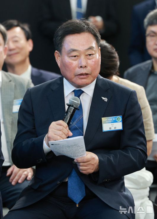 [광주=뉴시스] 고범준 기자 = 김산 전남 무안군수가 25일 광주 국립 아시아문화전당에서 열린 이재명 대통령과의 광주시민, 전남도민 타운홀미팅에서 발언하고 있다. 2025.06.25. bjko@newsis.com |