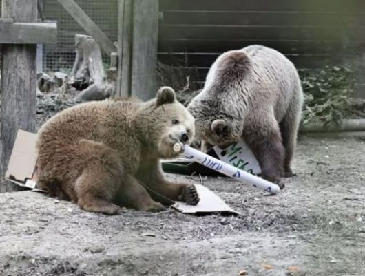 동물원을 운영하는 보호단체 와일드우드 트러스트 관계자는 "곰 두 마리가 앉은 자리에서 먹어 치운 꿀은 평소 이들이 먹는 꿀 일주일 치 분량에 달한다"며 "곰들이 잔치를 벌인 뒤 끈적해진 발로 이곳저곳 뛰어다니며 놀기도 했다"고 전했다.