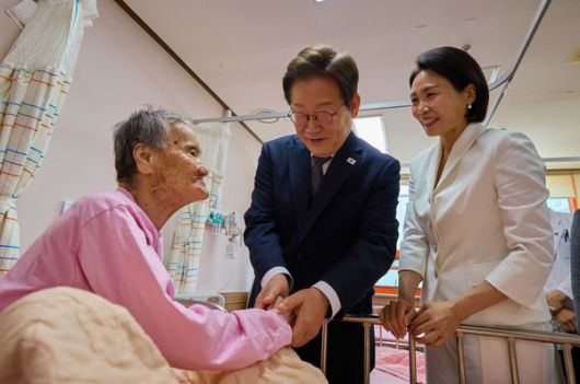 이재명 대통령과 김혜경 여사가 25일 전남 고흥군 국립소록도병원에서 환자를 위로하고 있다. 사진 출처: 대통령실 홈페이지 |