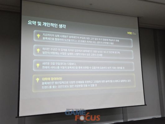 아무래도 블록체인 게임의 부정적인 인식은 토큰이 큰 영향을 줬는데 게임에 토큰을 적용하기 위해서는 정당성을 위해 유틸리티를 부여하게 되고 이는 쉽게 투지형 재화로 변질될 가능성이 높다는 것. 최악의 경우 기본적으로 글로벌 서비스를 진행하는 블록체인 게임의 경우 구매력과 경제력이 낮은 제 3의 국가가 이 코인을 대규모로 공급해 게임 내 경제 밸런스가 망가지고 핵 등을 통한 부당 이득이 발생할 가능성도 존재하는 등 게임 시스템의 복잡도가 급격히 상승하는 만큼 신중하게 접근할 필요성이 있다고 그는 설명했다.
