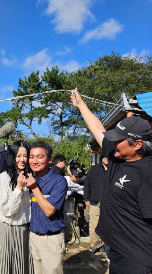 25일 배우 고현정은 자신의 SNS에 조재윤과 함께 찍은 한 장의 사진을 공개했다. 사진 속 두 사람은 드라마 촬영장 한켠에서 서로의 볼을 맞댄 채 손하트를 만들고 있었다.