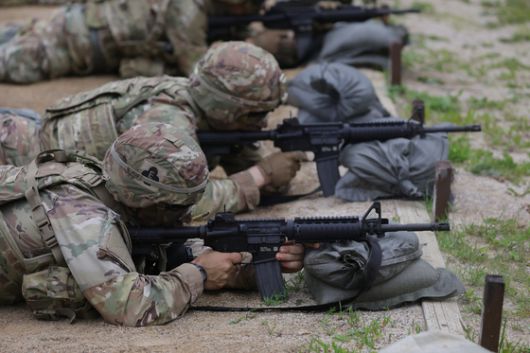 주한미군 장병이 소총 사격을 하고 있다. 연합뉴스 |