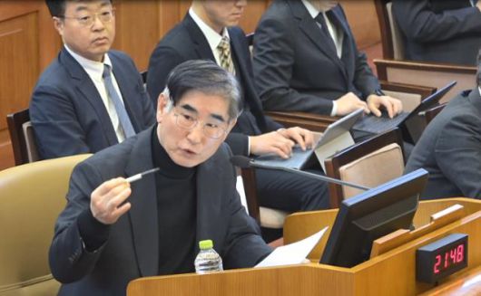 김용현 전 국방부 장관이 1월 23일 서울 종로구 헌법재판소에서 열린 윤석열 대통령 탄핵심판 4차변론에 증인으로 출석해 발언하고 있다. 헌법재판소 제공 |