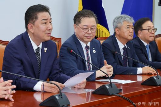 (서울=뉴스1) 안은나 기자 = 김병기 더불어민주당 대표 직무대행 겸 원내대표가 25일 오후 서울 여의도 국회에서 경제6단체 상근부회장단을 면담, 모두 발언을 하고 있다. 2025.6.25/뉴스1 Copyright (C) 뉴스1. All rights reserved. 무단 전재 및 재배포, AI학습 이용 금지. /사진=(서울=뉴스1) 안은나 기자 |