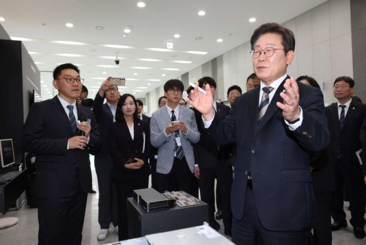 이재명 대통령이 20일 울산전시컨벤션센터에서 열린 인공지능(AI) 글로벌 협력 기업 간담회 뒤 AI 제품·서비스 시연을 참관하며 발언하고 있다. [김호영 기자] |