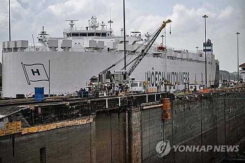 지난달 30일(현지시간) 파나마 운하 통과하는 선박 |