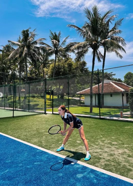 김희정은 25일 자신의 SNS에 “Forty-Love”라는 글과 함께 여러 장의 사진과 영상을 공개했다. 공개된 사진은 베트남 호이안의 한 리조트에서 촬영된 것으로 그의 스포티한 매력이 돋보인다.