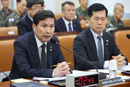 김선호 국방부 장관 직무대행이 25일 오후 서울 여의도 국회에서 열린 국방위원회 전체회의에 출석해 의원 질의에 답하고 있다. 뉴스1 |