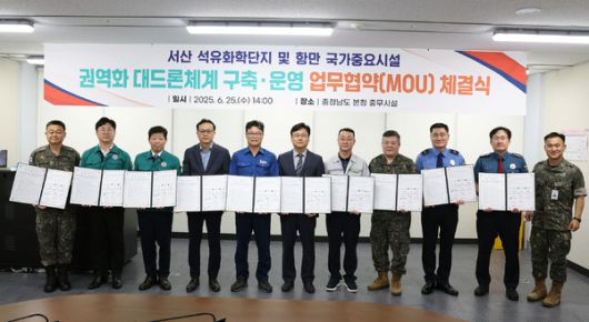 도는 25일 도 전시종합상황실에서 육군 제32보병사단, 국가정보원 지부, 도 경찰청 등 11개 기관과 '서산 국가중요시설 관련 광역화 대드론체계 구축·운영'을 위한 업무협약을 체결했다고 밝혔다.