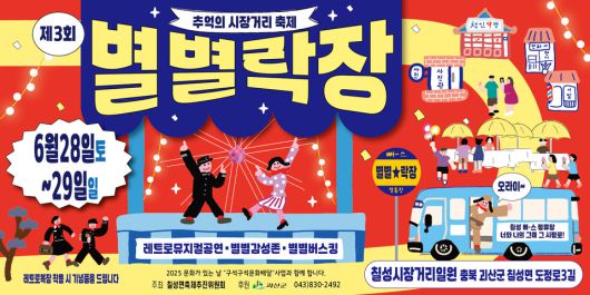 충북 괴산군 칠성면은 오는 28~29일까지 이틀간 칠성면사무소 앞 칠성시장거리 일원에서 '3회 칠성 별별락장 축제'를 개최한다고 밝혔다.