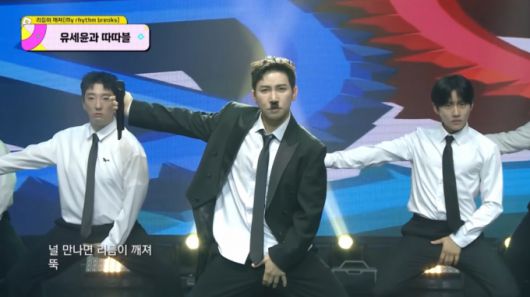 유세윤이 음악방송 콘셉트로 신곡 '리듬이 깨져' 무대를 선보이고 있다. /사진=유튜브 갈무리 |