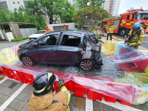이후 배터리 열폭주에 대비해 차량을 견인차로 지상에 옮긴 뒤 이동식 수조에 넣어 오전 8시 50분께 완전히 진화했다.