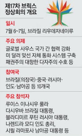 올해 브릭스 정상회의에는 의장국인 브라질을 포함해 중국, 러시아, 인도 등 10개국이 참여한다. 룰라 대통령과 모디 총리 외에 주요 정상으로는 블라디미르 푸틴 러시아 대통령, 시릴 라마포사 남아프리카공화국 대통령 등이 참석한다. 글로벌사우스 간 협력 강화와 미국 달러에 대항하는 자체 통화시스템 구축, 보호주의 반대 및 다자주의 수호 등이 주요 의제로 다뤄질 전망이다.