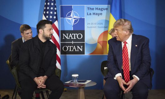 도널드 트럼프 미국 대통령과 볼로디미르 젤렌스키 우크라이나 대통령이 25일(현지시간) 북대서양조약기구(NATO·나토) 정상회의가 열리는 네덜란드 헤이그에서 만났다.