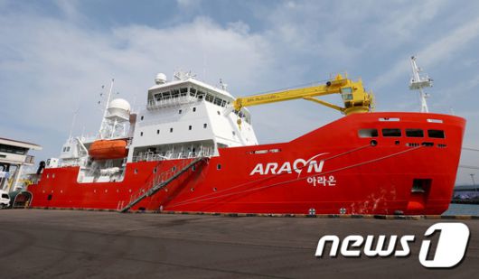 2015년 9일 강원 동해시 동해항에서 쇄빙연구선 아라온(ARAON)호가 입항해 있다.(동해시청 제공) 2015.6.9/뉴스1 ⓒ News1 윤창완 기자 |