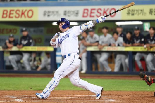 25일 대구 삼성라이온즈파크에서 열린 한화 이글스와 경기에서 3회말 홈런을 때려낸 삼성 라이온즈 박병호 |