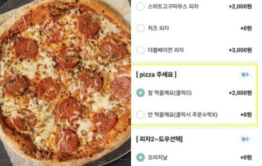 앞서 이 피자집은 배달 항목에 ‘잘 먹을게요(클릭 O)’ ‘안 먹을게요(클릭 시 주문 수락 X)’란 메뉴를 만들어 비난을 받았다.
