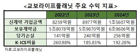 이러한 상황을 고려하더라도 교보라플은 적자 폭을 의미 있게 줄이지 못하고 있다. 최근 3년간 추이를 보면, ▲2022년 –141억원 ▲2023년 –240억원 ▲2024년 –256억원 등으로 적자 규모가 더욱 불어났다.