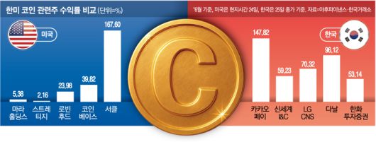 반면 뉴욕증시에선 6월 들어(현지시간 24일 기준) 코인베이스(39.82%), 로빈후드(23.98%), 스트레티지(2.16%), 마라홀딩스(5.38%) 등 주요 가상자산 관련주들이 한국 종목들 상승률에 미치지 못했다.