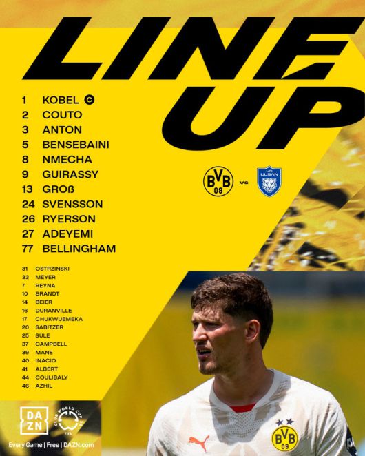 하지만 도르트문트는 전반 35분 루빅손의 패스미스를 가로챈 뒤 페널티박스 안에서 벨링엄의 패스를 다니엘 스벤손이 왼발 슈팅으로 선제골을 터뜨렸다.