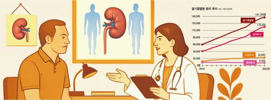 국내 콩팥 질환 환자 수가 빠르게 늘고 있다. 콩팥 기능이 서서히 나빠져 3개월 이상 지속되는 만성콩팥병으로 진료받은 환자 수는 2022년 기준으로 29만6천 명으로 최근 10년 새 2배로 늘었다. 특히 체내 노폐물과 수분을 제대로 배출하지 못해 생명 유지를 할 수 없는 상태에 이른 말기콩팥병 환자 수는 전세계에서 가장 빠른 속도로 증가 중이다. 대한신장학회에 따르면 2010년 5만8천여 명 수준이던 말기콩팥병 환자가 2023년 약 13만7천 명으로 2.3배 늘었다. 이 단계에서는 신장이 제 기능을 거의 하지 못하므로, 투석이나 신장이식 같은 신대체요법이 필요하다.