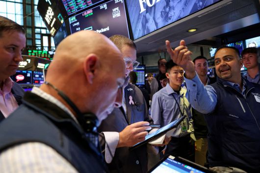 미국 뉴욕의 뉴욕증권거래소(NYSE)에서 트레이더들이 바닥에서 일하고 있다. 로이터연합뉴스 |