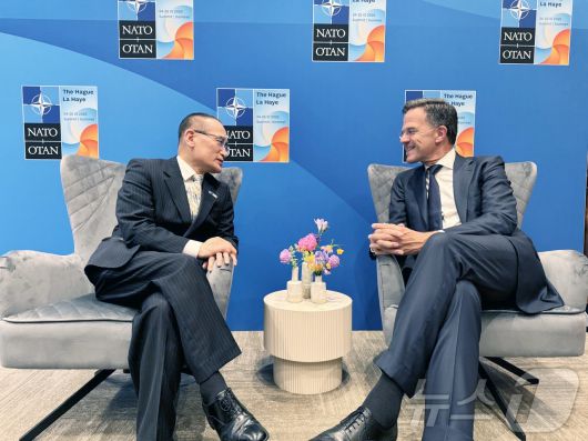 (서울=뉴스1) 이기림 기자 = 위성락 국가안보실장은 북대서양조약기구(NATO·나토) 정상회의에서 마르크 뤼터 나토 사무총장을 만나 한-나토 국장급 방산 협의체 신설에 합의했다.