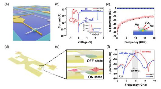 UNIST 전기전자공학과 김명수 교수와 반도체소재·부품대학원 윤태식 교수팀은 바나듐 산화물 멤리스터 기반 RF 스위치를 새롭게 개발했다.