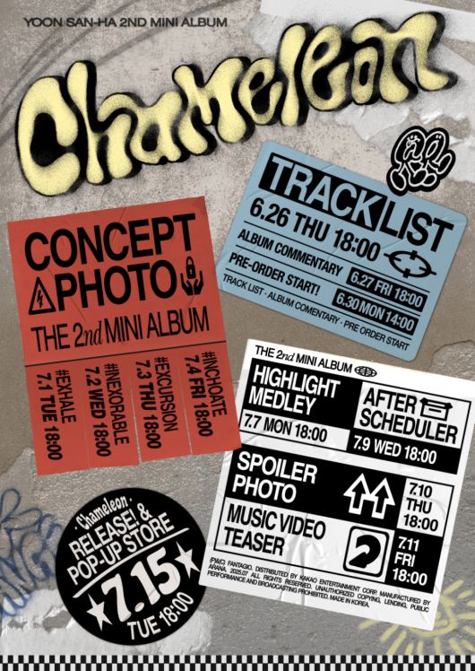 오는 30일 오후 2시부터는 'CHAMELEON' 피지컬 앨범에 대한 예약 판매가 시작된다. 이어 컴백 당일인 7월 15일에는 미니 2집 발매와 함께 'CHAMELEON' 팝업 스토어가 열린다. 윤산하는 완성도 높은 앨범은 물론 색다른 이벤트로도 즐거움을 선사할 전망이다.
