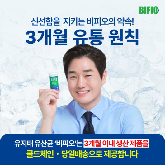 비피오는 "법적으로 허용되는 유통기한이 18개월이지만, 실제 유산균의 생존력과 효능은 시간에 따라 저하될 수 있다"며 "이번 '3개월 유통 원칙' 도입은 소비자에게 가장 신선한 상태의 유산균만을 제공하겠다는 브랜드 철학을 반영한 것"이라고 전했다.