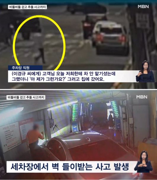 26일 MBN 뉴스가 공개한 CCTV 영상에서 이경규는 지난 8일 오후 12시쯤 서울 강남구의 한 골목길에서 주차돼 있던 버스를 경미하게 들이받는 사고를 냈다. 당시 이경규는 "감기약 먹어서 감각이 늦어가지고 차 뒤를 조금 쳤다."고 말한 것으로 알려졌다.