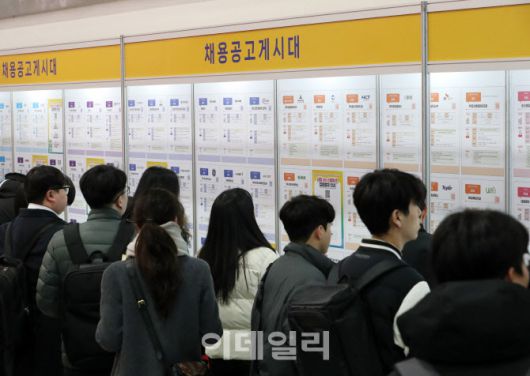 [이데일리 김태형 기자] 2025 대한민국 채용박람회에서 참가자들이 채용공고 게시대를 살펴보고 있다. |