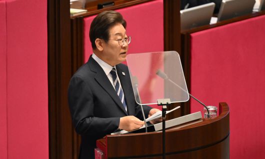 이재명 대통령이 26일 서울 여의도 국회에서 추가경정예산 시정연설을 하고 있다. 뉴시스 |
