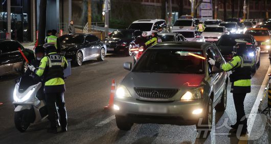 26일 현대해상 교통기후환경연구소는 마약퇴치의 날을 맞아 마약·약물운전으로 인한 교통사고의 위험성을 확인하고, 안전운전 문화 확산을 위한 안내자료를 발표했다. 사진은 서울 관악구의 한 도로에서 음주·약물운전 특별단속을 하고 있다. 2024.12.4/뉴스1 ⓒ News1 김진환 기자 |