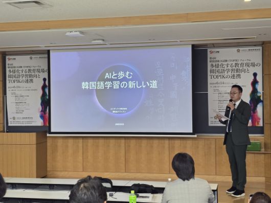 [디지털데일리 이안나 기자] 전자문서 솔루션 전문기업 유니닥스는 지난 14일 일본 도쿄 릿쿄대학교에서 열린 ‘제4회 한국어능력시험(TOPIK) 포럼’에 참석했다고 26일 밝혔다. 이 자리에서 도재승 유니닥스 부사장은 ‘AI와 함께 걷는 한국어 학습의 새로운 길’을 주제로 발표했다.